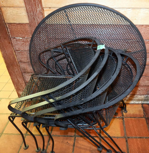 4-chairs, table top is 42" diameter; includes legs; chairs have some wear & paint loss; hallway