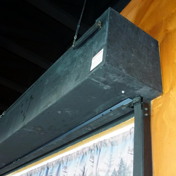 102" wide, 97" tall, this is a drop down door incase of a fire, from Overhead Door; buyer will be responsible for removal; LARGE ITEM LOAD OUT ITEM