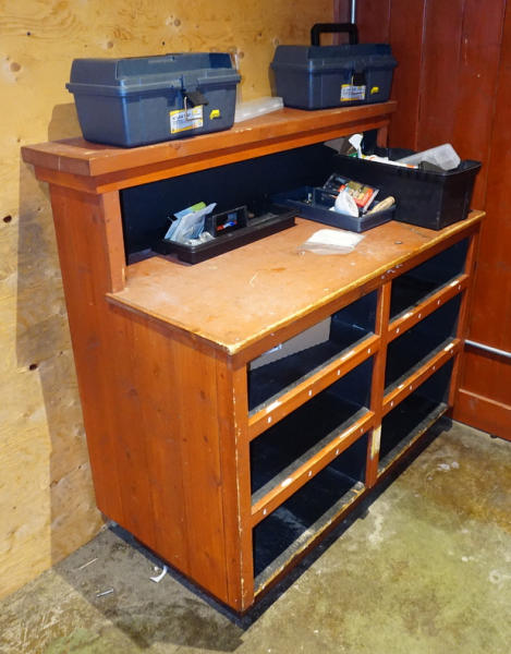 50"x25"x49" tall, worktop is 36" tall, 6-shelves, all to go