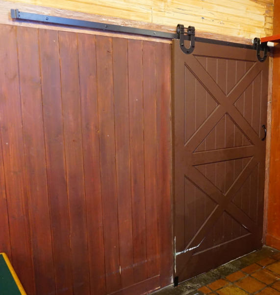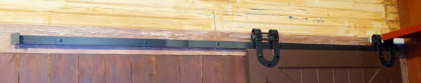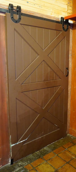84" tall, 48" wide, used with scuffs; buyer responsible for removal, include about an 8' piece of sliding track