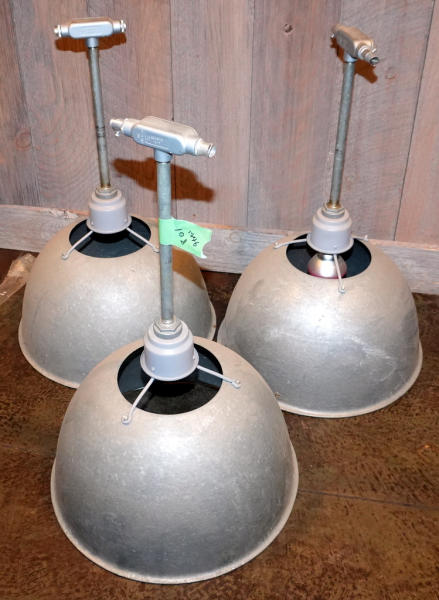 3 are done; rest are still having in South Dining Room; buyer responsible for removal; galvanized shades are 21" in diameter; Large Item Load out