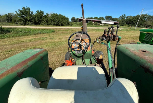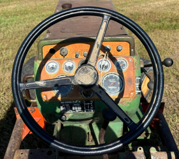 Over/Under Shift, wf, fenders, 18.4x34” rears, includes an old Dual Loader, 3pt (no center link), 2-hyd, shows 2,315 hrs (unknown), runs, original, SN#208-615-557; Includes an old Du-al loader if the buyer wants it; pick up at Schmidt Farms near Menominee