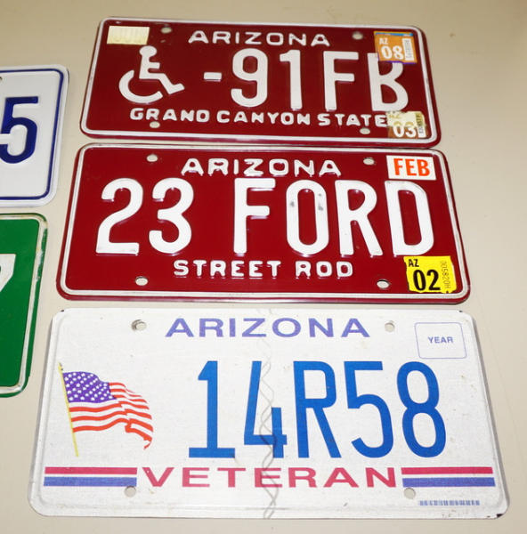 Nearly 500 Lots from the Harry Guthmiller Estate of Tripp, SD. License plates from around the world plus LP Toppers, Booster Plates, & auto memorabilia!