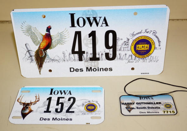 Nearly 500 Lots from the Harry Guthmiller Estate of Tripp, SD. License plates from around the world plus LP Toppers, Booster Plates, & auto memorabilia!
