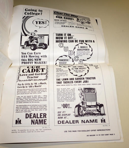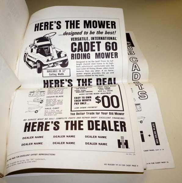 18"x12" booklet, full of ad mats for dealers to use, has been folded and some general wear, another piece we have not sold before