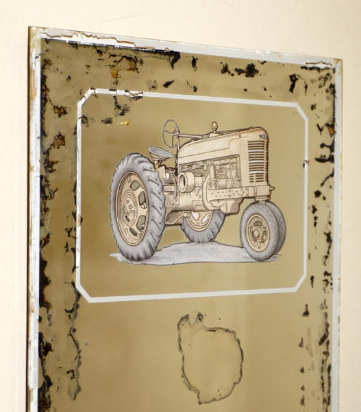 18"x8", this is the larger version, color is faded and has a lot of flaking to the mirror