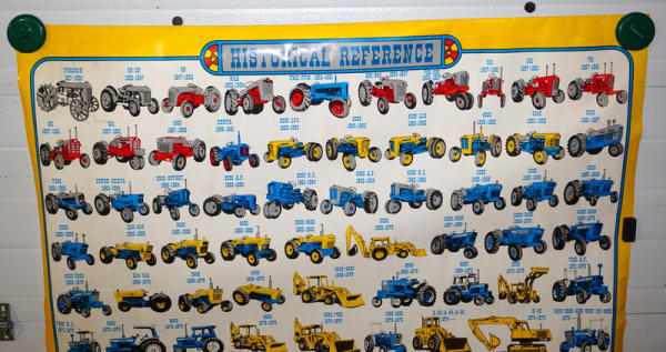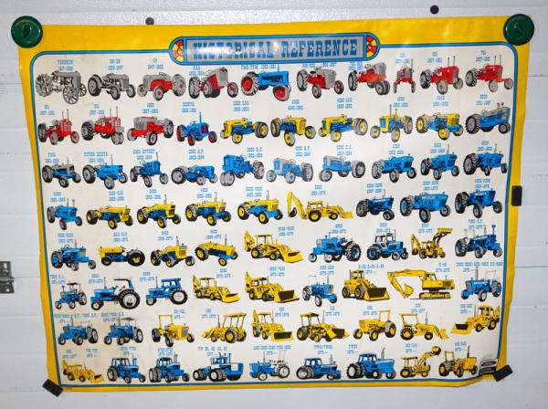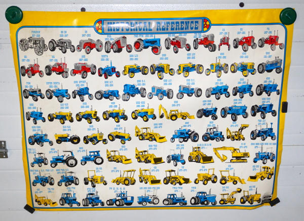 shows from the Fordson to the 1978 Tractors, 35"x44", has some water stains and general wear, rolled