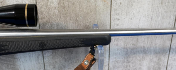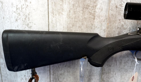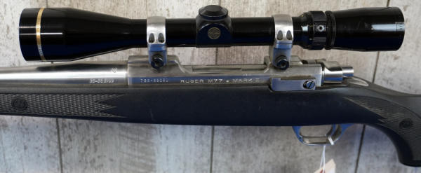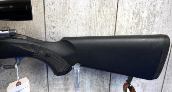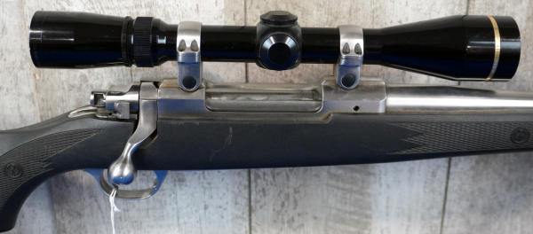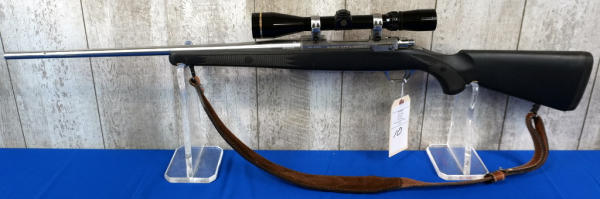 22" Stainless Barrel; smooth action; black synthetic stock; leather sling; Leupold Vari-X-III 3.5x10 scope; has a field marks from use but overall nice gun; USA; SN#788-89021; A-242