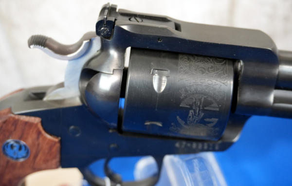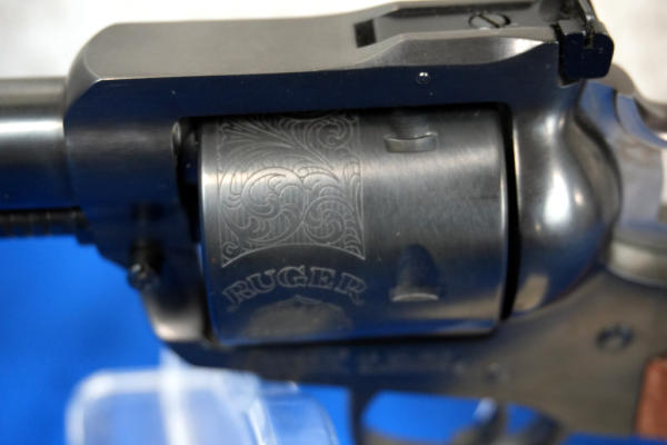 7.5" BBL; smooth factory wood grips; engraved fixed 6-shot cylinder; adjustable rear sight; factory hard case; looks new & unfired; USA; SN#47-88919; A-248