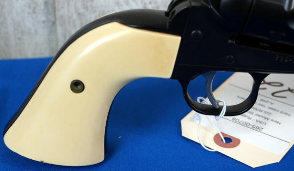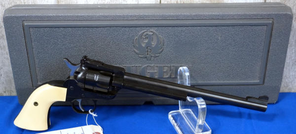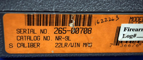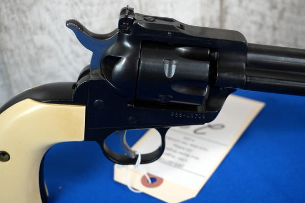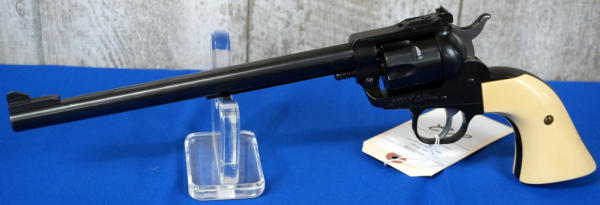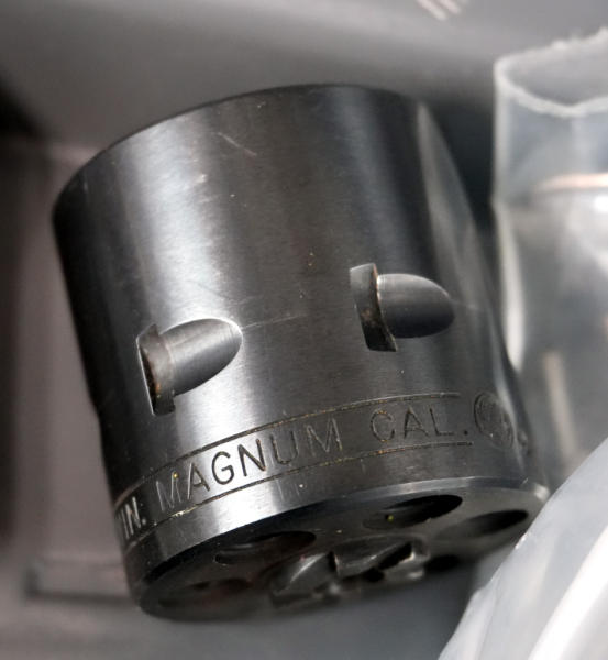 9.5" BBL; includes both mag & LR 6-shot fixed cylinders; white plastic smooth grips; adjustable rear sight; factory hard case; looks unfired; USA: SN#265-00708; A-248