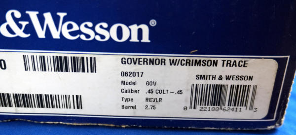2.75" BBL; 6-shot swing out cylinder; laser sight in rubber grip; 2.5" for .410ga.; looks unfired; factory box; front single dot night sight; USA; SN#DJC9590; A-256