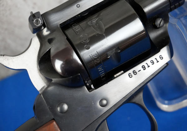 9.5" BBL; very clean and looks nearly unfired; smooth wood grips; adjustable rear sight; 6-shot fixed cylinder; USA; SN#66-91916; A-247