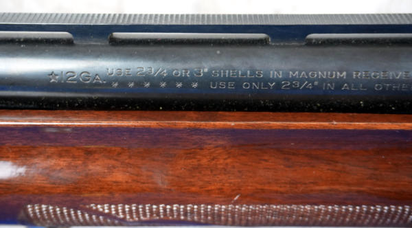 30" VR-BBL; smooth action; is not marked Wing-Master but it is a WM set-up; hy-gloss checkered wood stock; 2.75" & 3"; FC; very hard to find a left handed WM Magnum, 1st one we've ever had come through!; USA; SN#W248963M; A-247