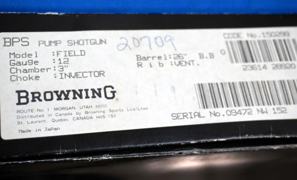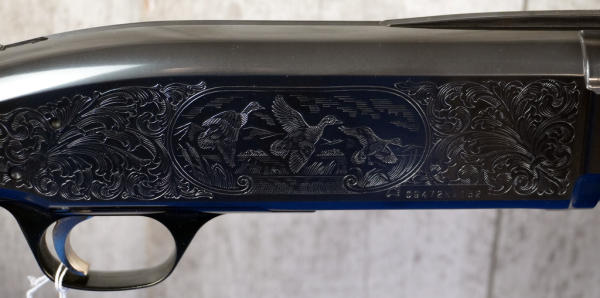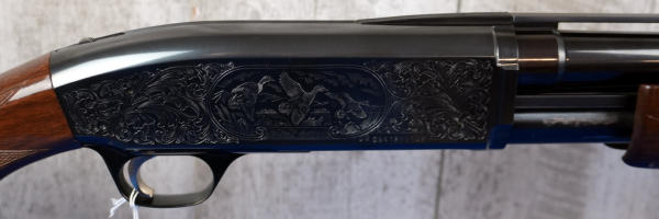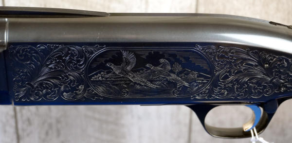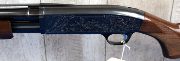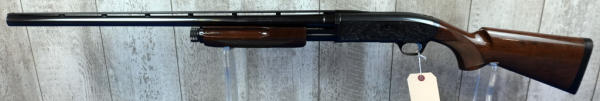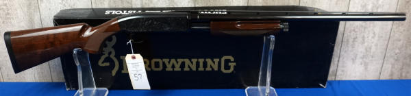 26" VR-BBL; smooth action; factory engraved receiver w/ducks & pheasant scenes; high gloss wood stock; nice bluing; gold trigger; factory box only, has no styrofoam liner inside; additional chokes; 2.75" & 3"; bottom eject; like new condition; Japan; SN#09472NW152; A-244