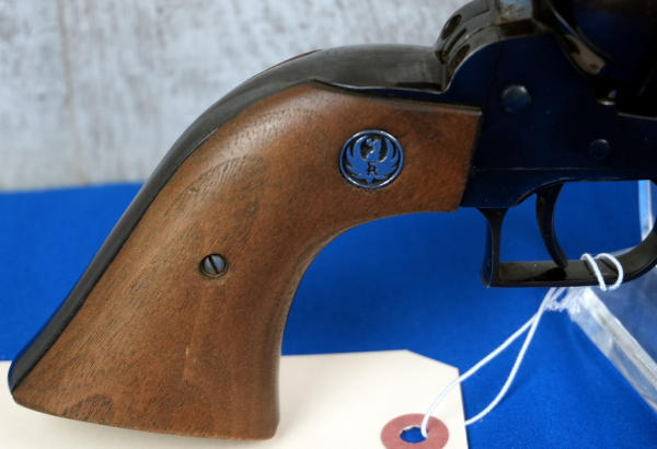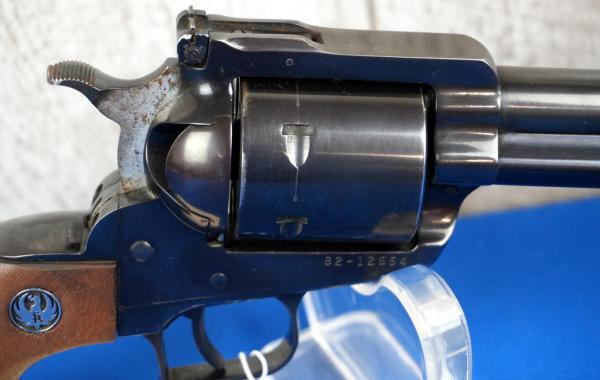 7.5" BBL; 6-shot non-fluted fixed cylinder; smooth wood grips; adjustable rear sight; has some spotting around the muzzle; Bulldog black canvas holster; USA; SN#82-12654; A-259