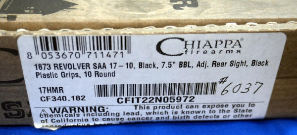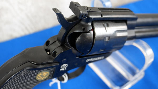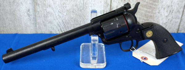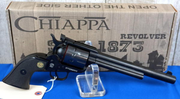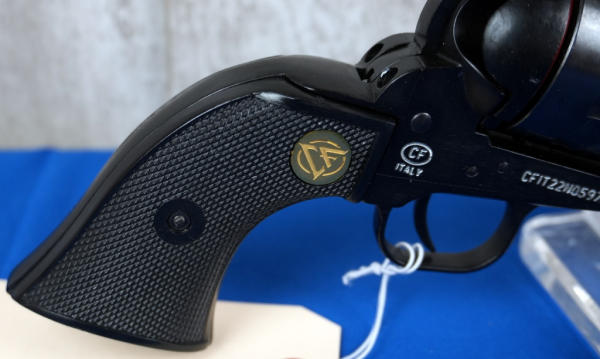 7.5" BBL; 10-shot fixed cylinder; Mint & unfired w/factory box; black plastic checkered grips; adjustable rear sight; Italy; SN#CFIT22N05972; A-247