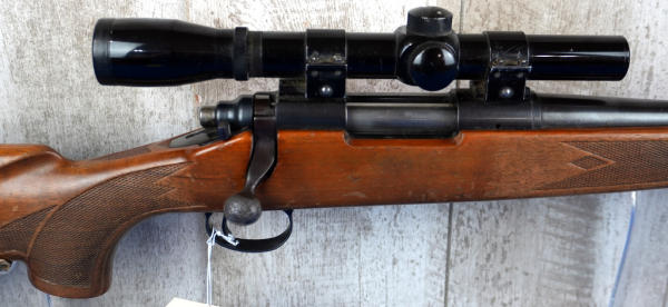 20" BBL; action is alittle gummed up; leather sling; wood stock; overall finish has use wear & marks; Bushnell 2.5x Banner scope; USA; SN#51793; A-245