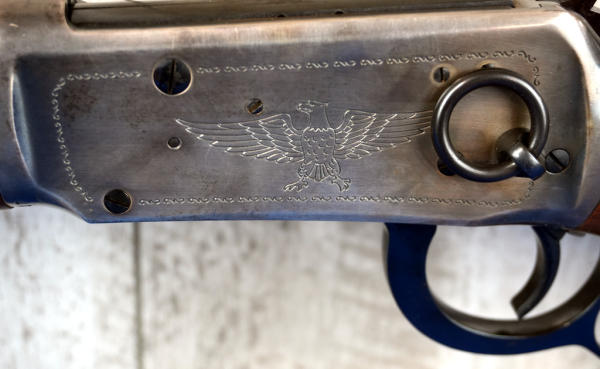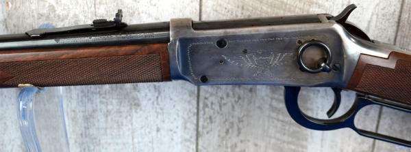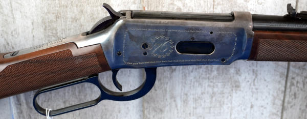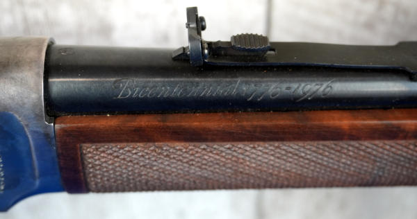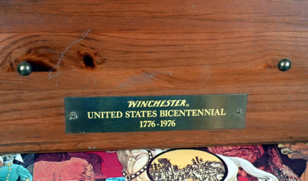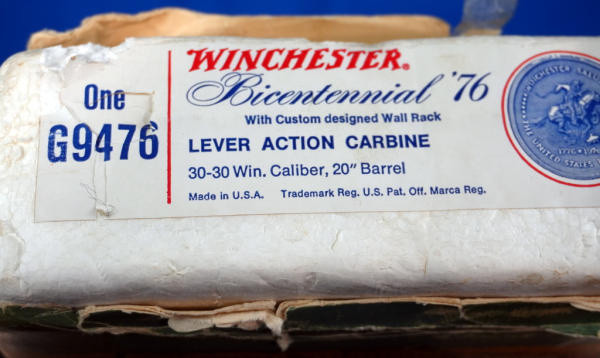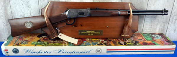 20" Rnd. BBL; case hardened receiver w/engraving & '76 logo; medallion in stock; mint & unfired; factory box, sleeve shows some wear; includes the Antler Wall Display Rack; approx. 20,000 mfg.; USA; SN#USA02017; A-256