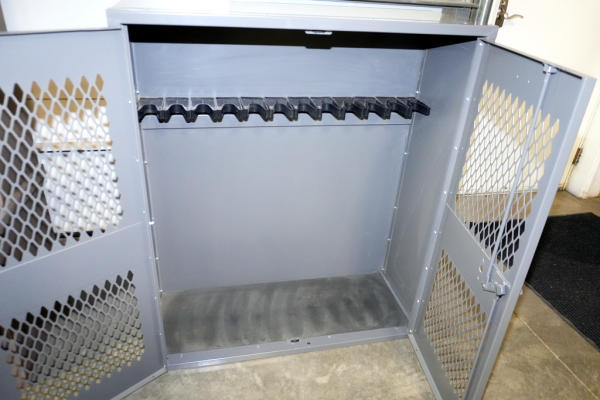 made to hold scoped guns; very nicely built and sturdy; 42"x36"x14"; NO SHIPPING, local pickup pin Wakonda Only, can store up to 30-days