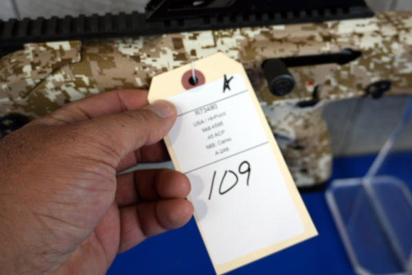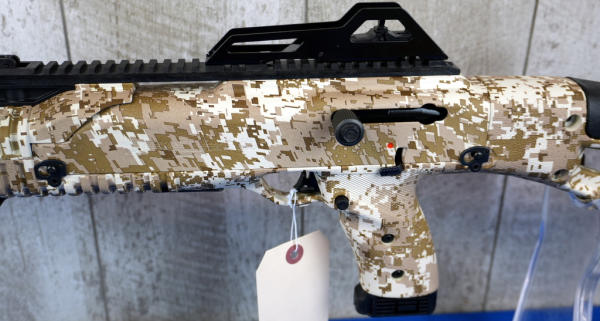 17" BBL; synthetic brown camo, "Desert Storm" style; removable magazine in pistol grip; mint & unfired w/factory box; had several of the before but never one with this camo scheme! USA: SN#R73480; A-248