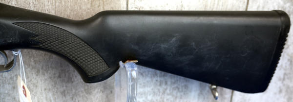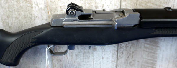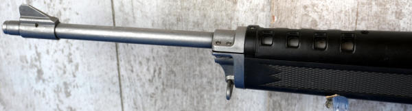 18.5" Stainless barrel; black synthetic stock; adjustable rear sight; NO magazine; used but very clean condition; hard to find in stainless; USA; SN#196-50360; A-247