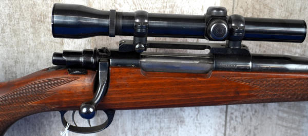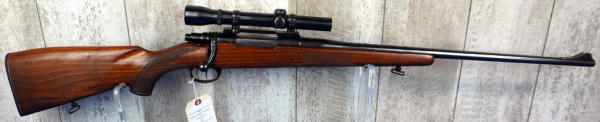 not positive on the model of this firearm; smooth action; very nice wood checkered stock; nice bright bluing; Older Weaver K3 60-B scope; includes some paperwork but not specific to this gun; missing part of the front sight; has a set trigger; Yugoslavia; SN#30287; A-268