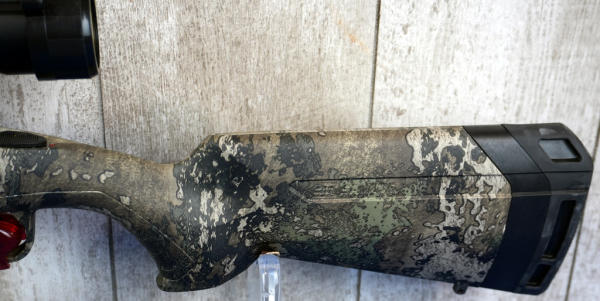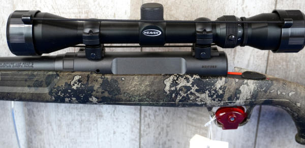 22.5" BBL; mint & unfired w/factory box; Strata Camo synthetic stock; Weaver scope; bolt in box; removable magazine; USA; SN#R217383; A-237