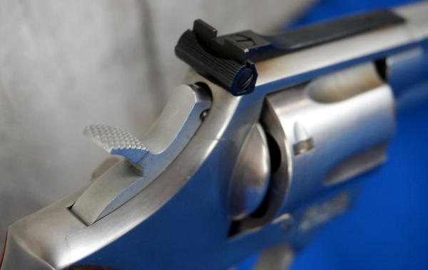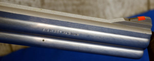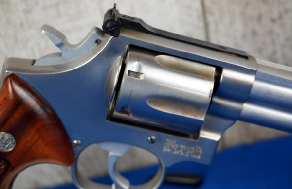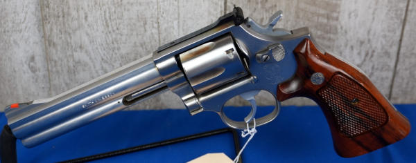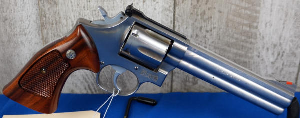 6" Stainless Barrel; red ramp front sight; TG; 6-shot swing out cylinder; adjustable rear sight; nice used condition; USA; SN#AWV4942; A-272
