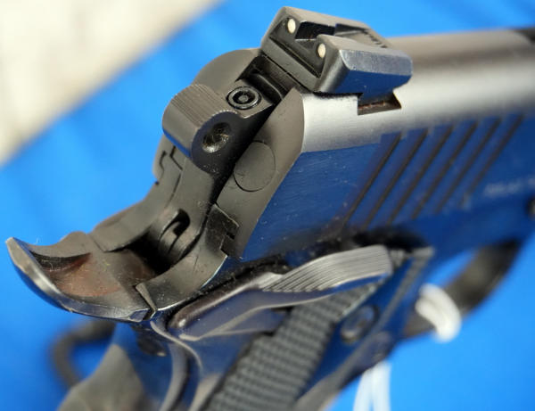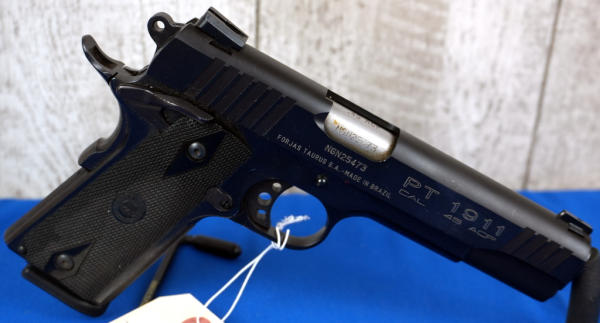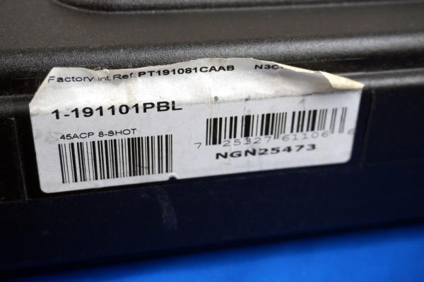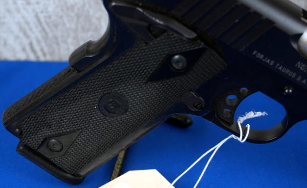 5" Stainless Barrel; plastic checkered grips; night sights; factory hard case; 2-magazines; nice used condition; Brazil; SN#NGN25473; A-246