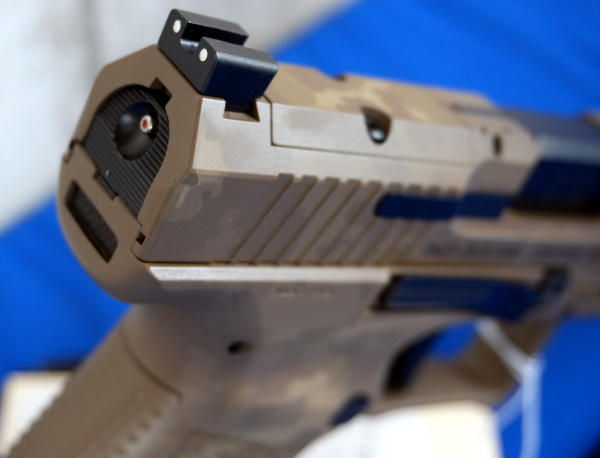 4.5" BBL; brown camo synthetic body; night sights; 2-magazines w/lots of accessories; Turkey; SN#23CC04564; A-244