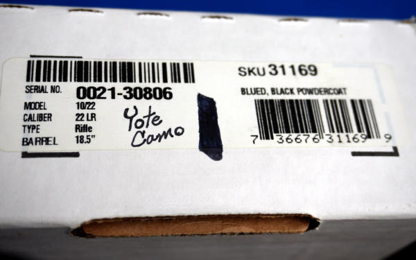 18.5" BBL; mint & unfired; synthetic stock w/Yote Thunder Mountain Camo; removable magazine; factory box; picatinny rail; USA; SN#0021-30806; A-247