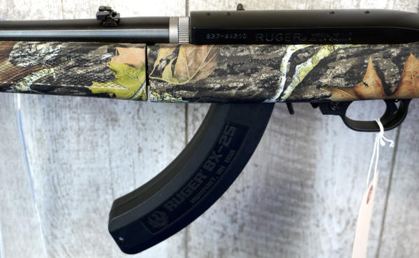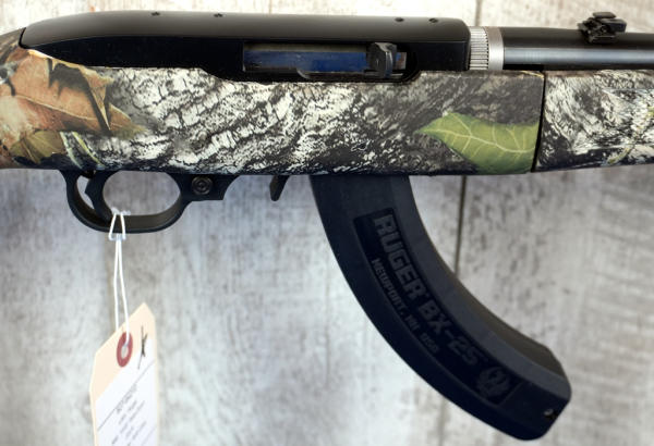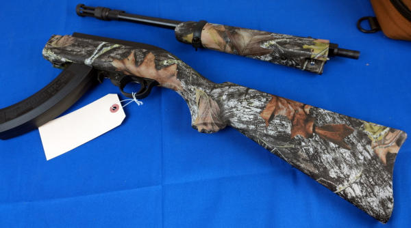 16.5" BBL w/2" Flash Hider; camo synthetic stock; comes apart easy; includes one BX-25 banana clip; factory soft zippered carry case; appear mint & unfired; USA; SN#827-64210; A-244