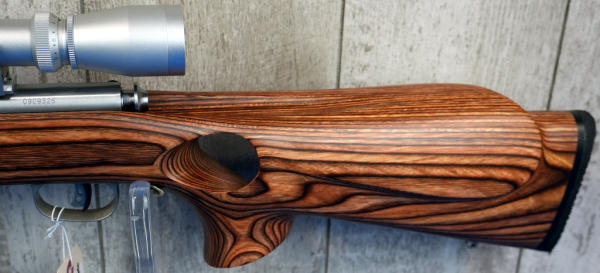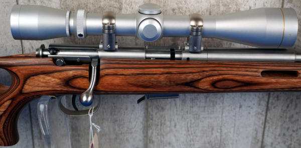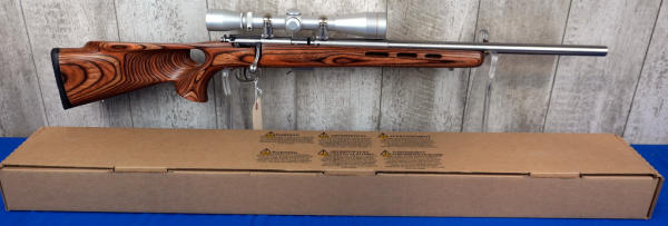 21" Stainless Varmint Barrel; wood grain laminate thumbhole stock; removable magazine; factory box; looks new & unfired; Leupold VX-I 3-9x40mm Scope; Canada; SN#0909326; A-244