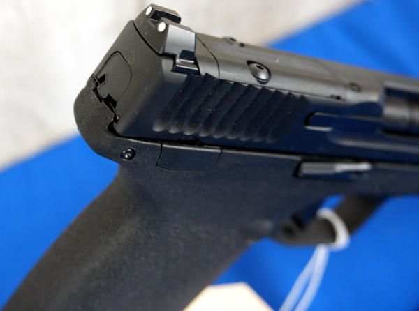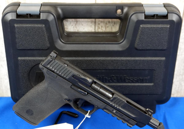 5-1/8" BBL w/Threaded Muzzle; black synthetic frame; night sights; optics ready; 2-magazines; factory hard case; has a small spot of finish loss on top from storage, otherwise near mint; USA; SN#PJJ3944; A-244