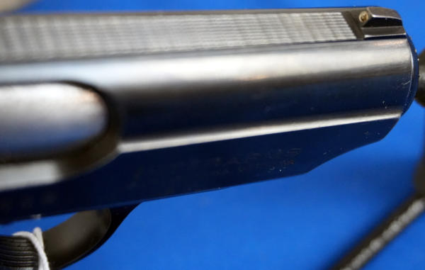 3.25" BBL; black plastic checkered grips; night front sight w/single line rear sight; overall very clean used condition; includes factory hard case (small crack); imported by Interarms; includes test fire sheet; USA; SN#031589; A-271