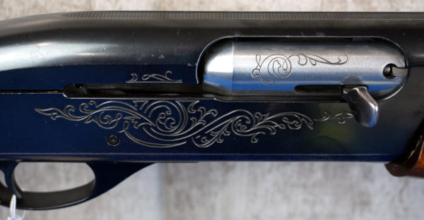 30" Rnd. BBL; factory scroll engraving on receiver; has some minor use marks and wear; 2.75"; FC; includes the original instruction sheet; nice wood w/good gloss; USA; SN#L088982V; A-272