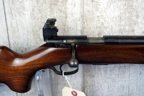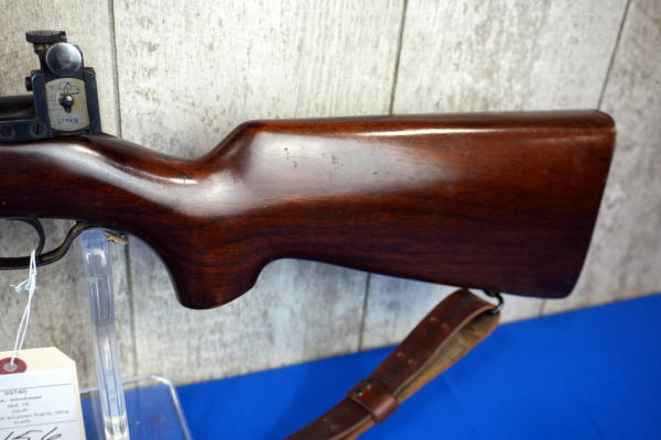 28" BBL: smooth action; removable magazine; leather sling; Lyman Target Peep Sights; wood stock has some minor scratches & use marks; USA; SN#39740; A-245