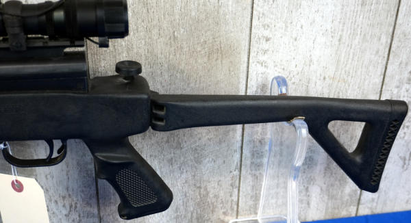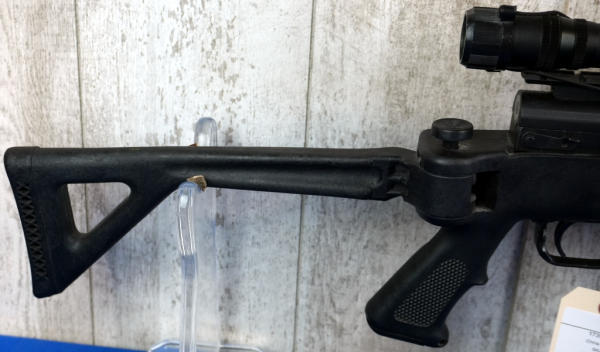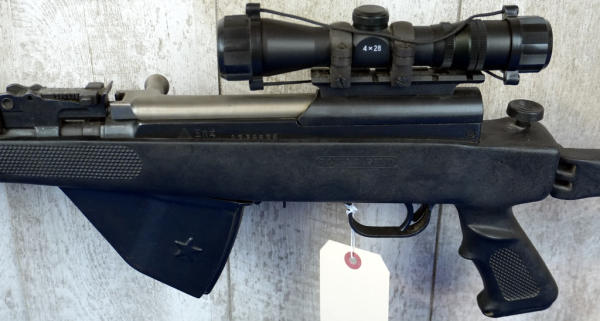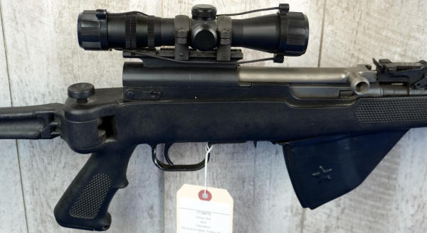 not sure on maker, possibly Norinco; 20" BBL w/2" Flash hider; folding synthetic stock; 4x28 scope; adjustable sight; China; SN#1739679; A-245