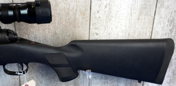 22" BBL; smooth action; black synthetic stock; Tasco 2-7x32 scope; removable magazine; like new condition; USA: SN#J160890; A-236