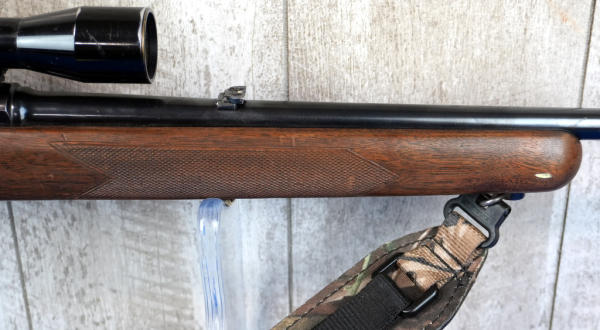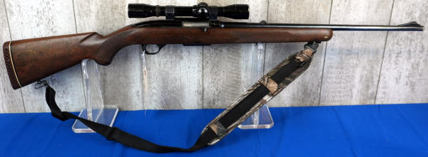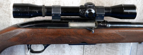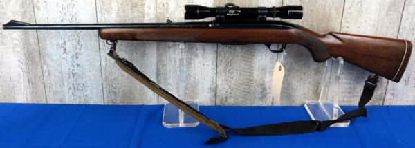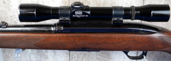 22" BBL; action is gummed up, needs cleaning; removable magazine; camo sling; Bushnell Scope Chief 4x scope; wood is solid but has some field marks from use; bluing is thin on barrel; USA; SN#6588; A-235