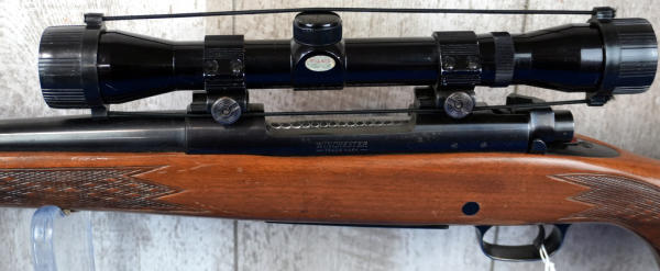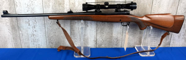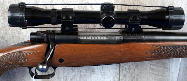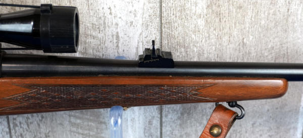 22" BBL; smooth action; very nice checkered wood stock; leather sling; Tasco 4x32 Japan scope; has use wear but overall nice and clean; USA; SN#G1014323; A-272