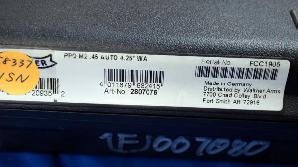 4.25" BBL; black synthetic body; night sights; new w/factory hard case; 2-magazines; Germany; SN#FCC1905; A-263