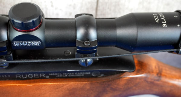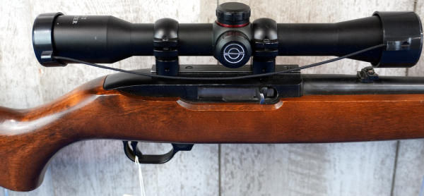 18.5" BBL; nice clean used condition; wood stock; Simmons 4x32 Blazer Scope; removable magazine; USA; SN#122-88419; A-236