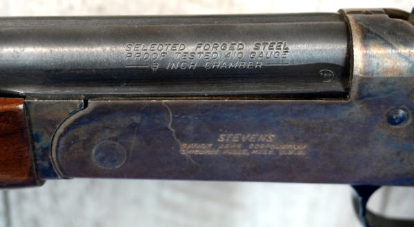 26" BBL; easy break action; wood is solid w/some finish loss; case hardened receiver; nice bluing on barrel; 3"; FC; USA; No SN#; A-270