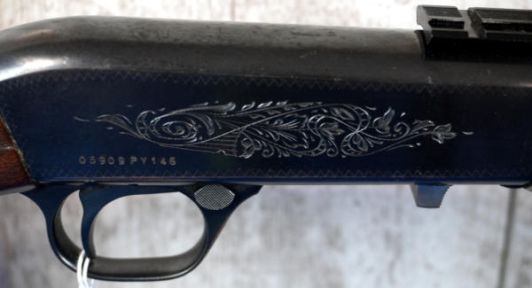 19" BBL; picatinny rail; receiver tube in stock; wood is nice but does have a small crack on right side behind receiver; factory scroll engraving; Japan; SN#05909PY146; A-247