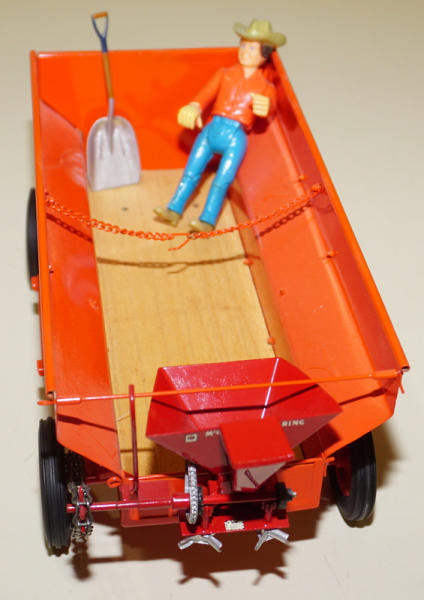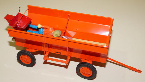 old wagon restored & customized to case including a better hitch and side bars; end gate seeder I believe is a Riecke, includes a man for display, nice set