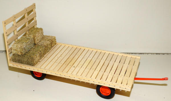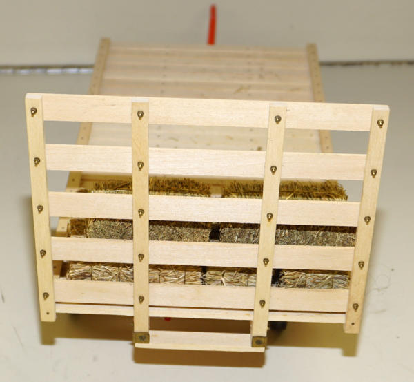 Scratch built metal gear is really nice, wood bed is also scratch built and very nice, includes a couple of bales for display
