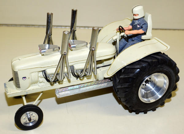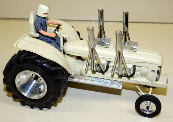 Heavy, solid cast body, has been wired so lights come out the stacks, but the battery box has been cut off, not marked, but very similar build to the Exciter puller; no shipping