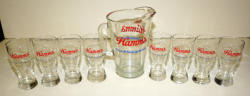 #502 - Hamm's blown Glass Beer Pitcher--Red Logo