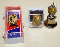 4.75" tall, used, has some lettering loss on the back side and general wear